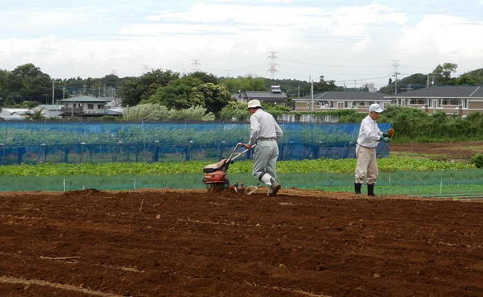 2011年7月30日、毎年でしたら、今頃は草がぼうぼう生えてきて手が付けられない状態でしたが、今年は新しい土地を開墾しての試みでしたので、まったくと言って良いほど草が生えてきません。したがいまして、今年の草取り作業は中止となりました。