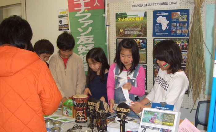 ブースは、会場の端で決して良い場所ではありませんでしたが、一足先に、ネリカ米の稲穂をお披露目、ブルキナファソの写真を展示し周知に努めました。